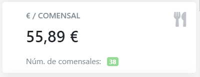 El panel muestra el número de comensales, así cómo el consumo medio por comensal ( facturación / número de comensales).