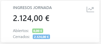 El panel muestra los ingresos totales de la jornada desde la apertura de caja, tanto para tickets cerrados ya totalizados (remarcados en azul), como para los tickets abiertos (resaltados en verde).