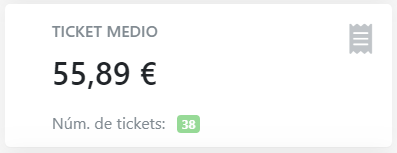 El panel muestra el valor en euros para el ticket medio (facturación / número de tickets), así cómo el número de tickets acumulados.