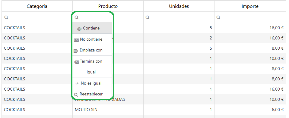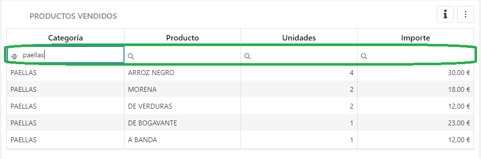 Además, desde la tabla de productos vendidos podrás filtrar por criterios adicionales como el importe o si se ha superado la venta para cierto número de unidades.