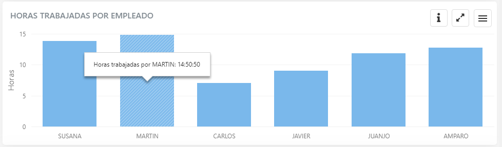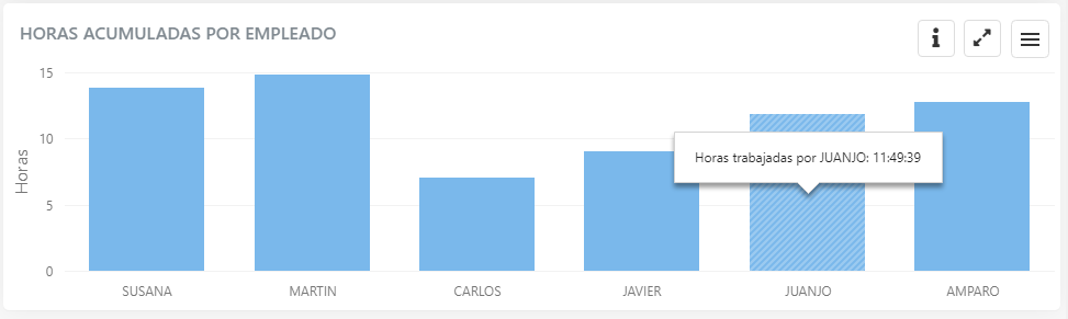 Esta gráfica muestra el total de horas trabajadas por cada empleado, para el día seleccionado.