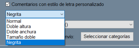 Por otro lado, puedes personalizar el estilo de letra para el texto de los comentarios, para que se imprima: normal, doble altura, doble anchura, tamaño doble o negrita. Marca la línea y selecciona el tipo desde el desplegable.