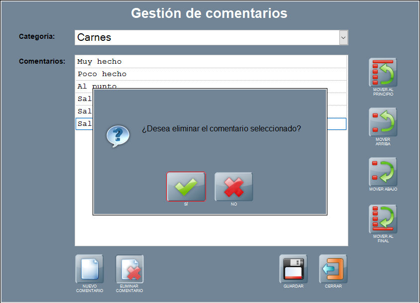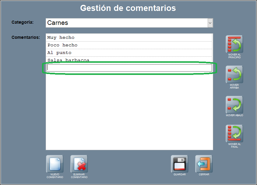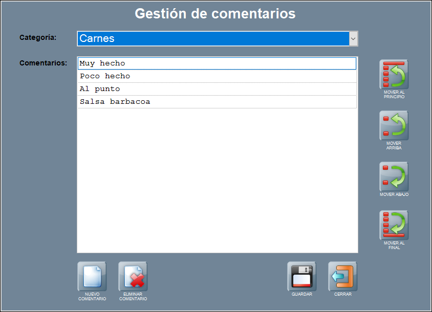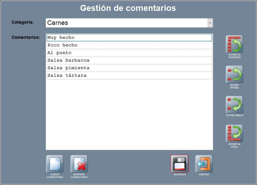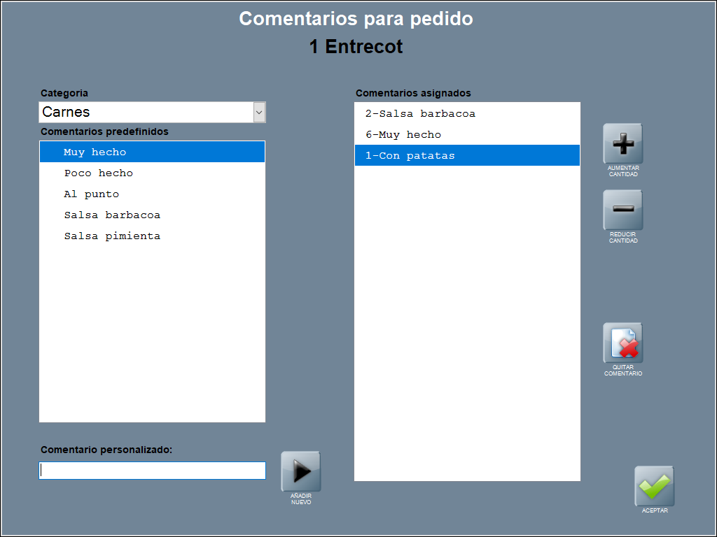 Los comentarios son notas para el modo de preparación en cocina y resultan muy útiles en el momento de elaborar el plato o pedido, según el gusto de los comensales.