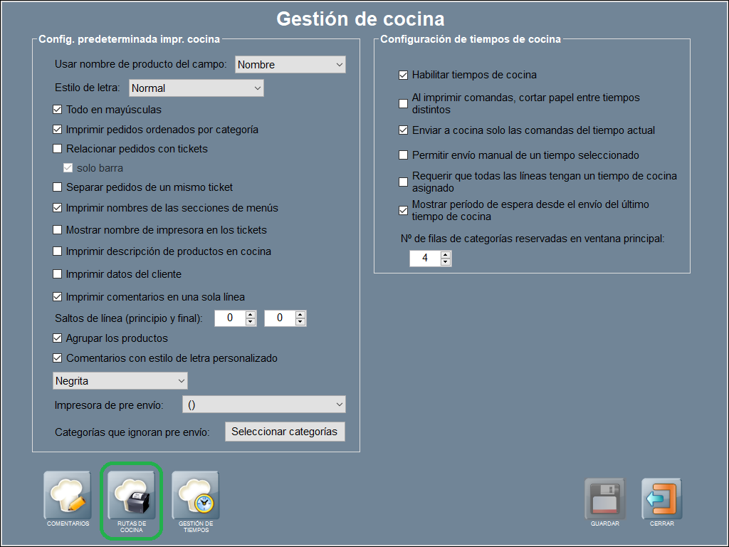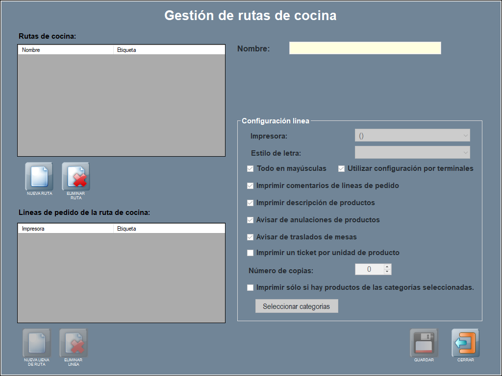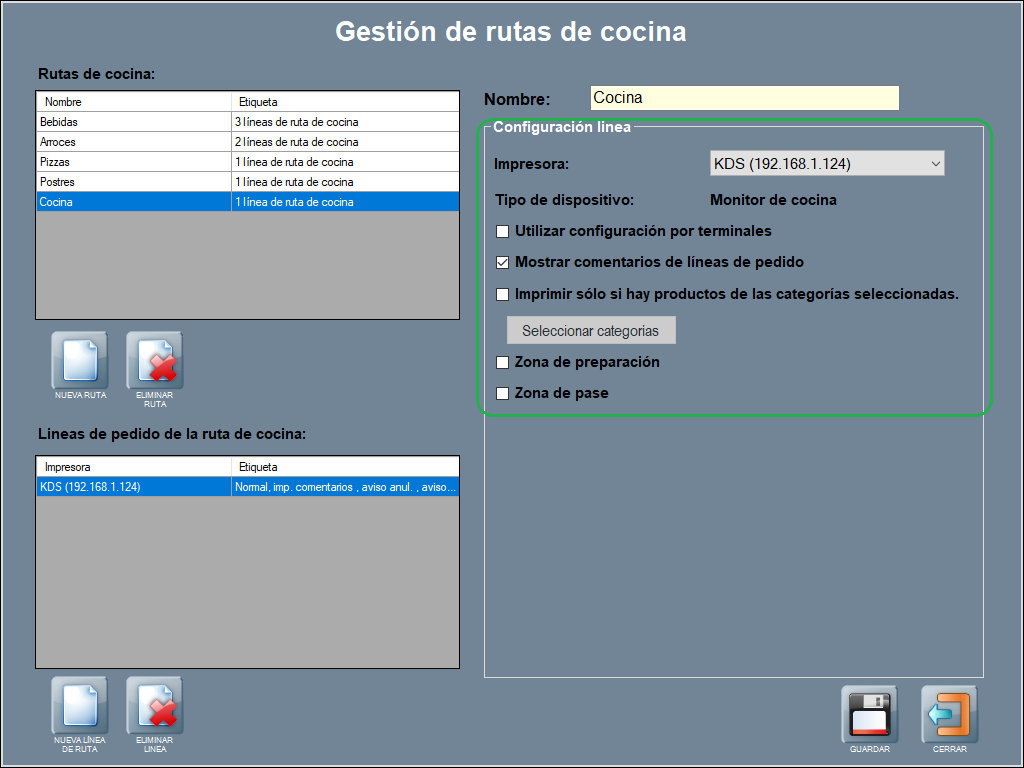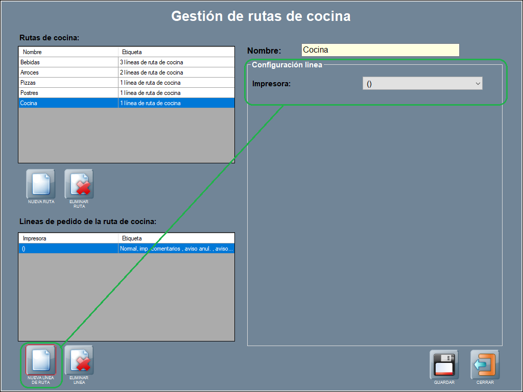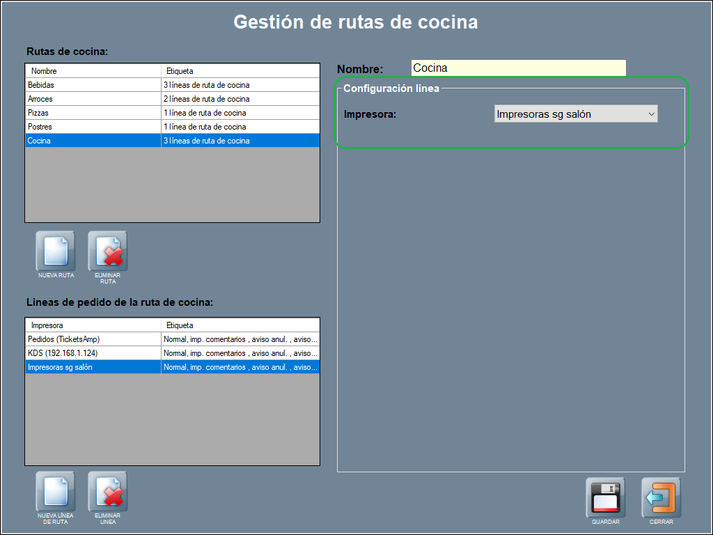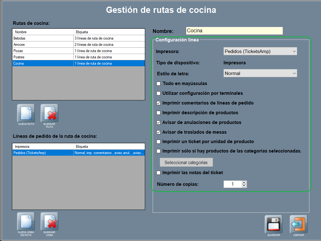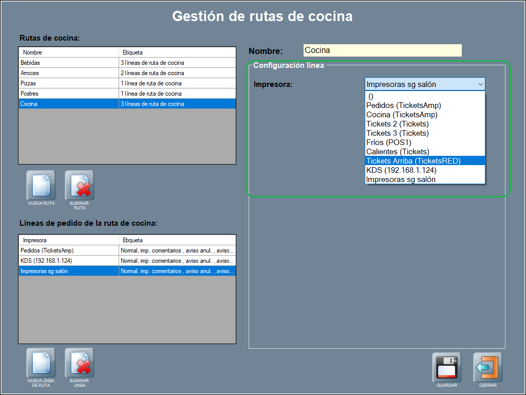 Las rutas de cocina tienen como objetivo, principalmente, la impresión múltiple: es decir, imprimir la misma comanda por varias impresoras.