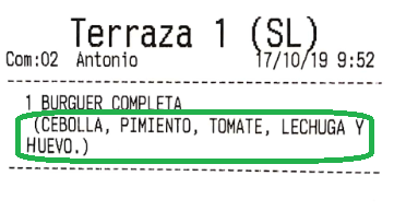 • Imprimir descripción de productos en cocina: activar esta opción hará que la descripción de los productos aparezca también en la impresión del pedido, entre paréntesis (recuerda que la descripción de los productos se configura desde la ventana de gestión de productos de venta).