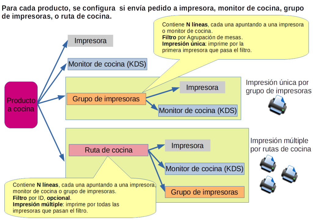 Rutas de cocina con agrupación de impresoras con KDS