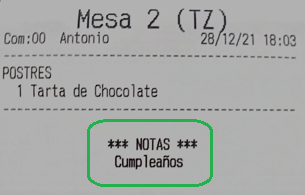 • Imprimir las notas de ticket: esta opción permite imprimir las notas de ticket en las comandas de cocina.