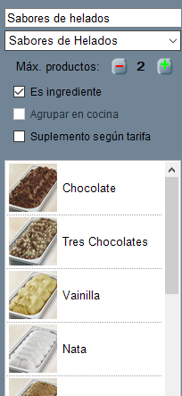 Por ejemplo, imagina que tienes un combinado similar al que se muestra en la imagen de arriba (un helado con dos bolas de sabores) y que los sabores (chocolate, tres chocolates, nata, etcétera) tienen asignada una impresora A para pedido, y el helado en sí tiene asignada otra impresora B. Pues bien, al activar esta opción, todo el pedido saldrá por la impresora B. Si no activaras esta opción, los sabores saldrían por la impresora A, y por la impresora B tendrías una línea donde se mencionaría el helado de dos bolas.