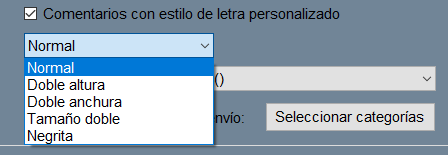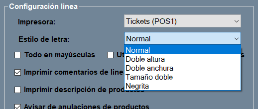• Estilo de letra: con este desplegable, puedes elegir entre normal, doble altura o anchura, tamaño doble y negrita.