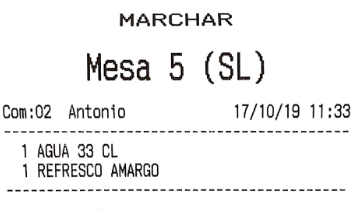 Ejemplo de nota de ticket impresa en comanda de cocina.
