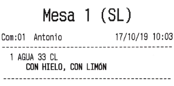 • Imprimir comentarios en una sola línea: por defecto, los comentarios a cocina se imprimen a razón de una línea por comentario. Activando esta opción, todos los comentarios a cocina, para un mismo producto, se imprimirán en la misma línea de la comanda.