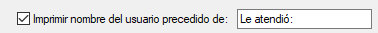 Imprimir nombre del usuario precedido de: escribe el texto deseado, por defecto ‘Le atendió’.