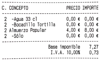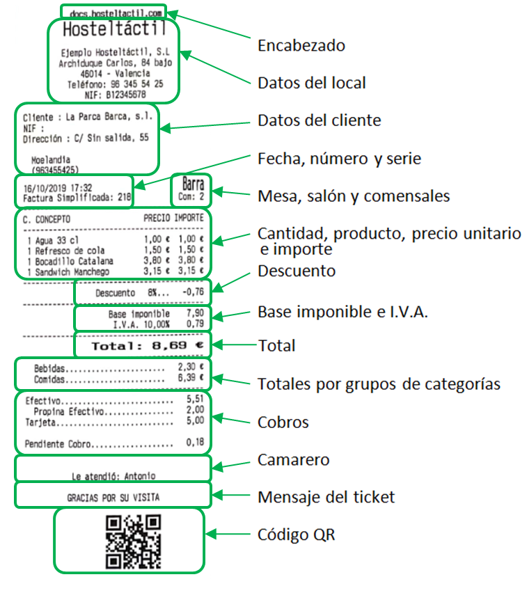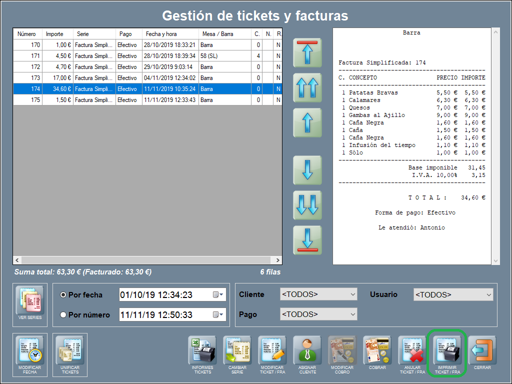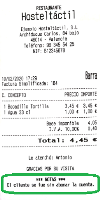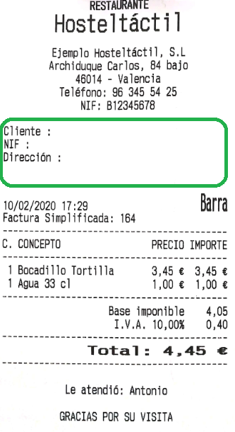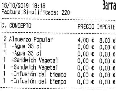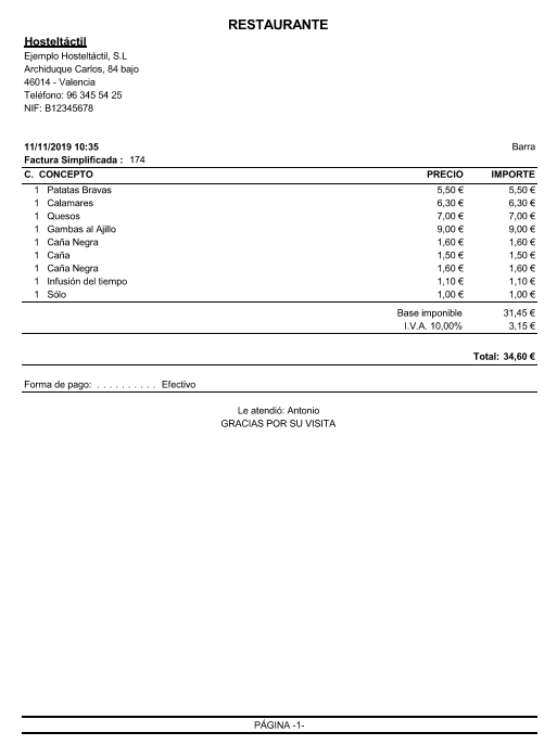 A continuación, un ejemplo de la factura impresa (que corresponde a la factura simplificada nº 174) en formato gráfico.