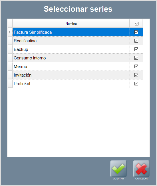 - Series: desde aquí especificas qué series quieres que se impriman por esta impresora. Esta función es muy útil y permite filtrar por serie para, por ejemplo, sacar facturas por la impresora de papel A4, en vez de por la impresora POS. Para añadir o modificar las series disponibles, visita el apartado Gestión de series.