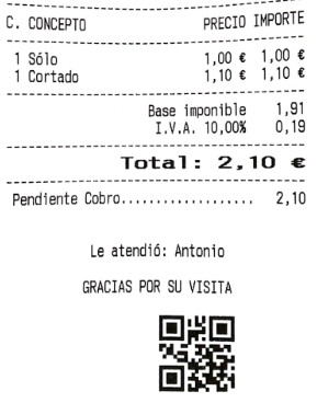 Para usar esta funcionalidad, tu impresora de tickets tiene que ser compatible con la impresión de códigos QR, e incorporar las instrucciones necesarias para ello (si tu impresora no es compatible, imprimirá un texto alfanumérico, en lugar de un código QR).