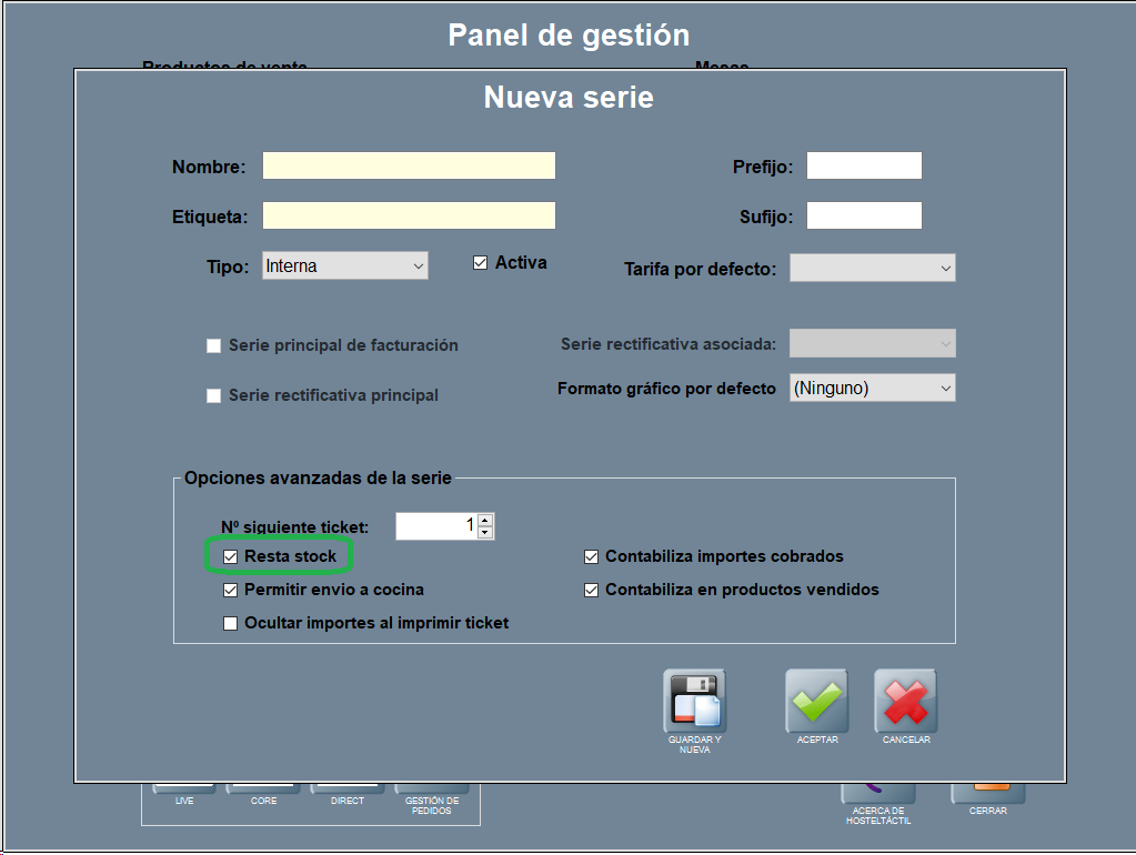 Por otro lado, puedes crear series que no afecten al control de stock. Para más información consulta Gestión de series.