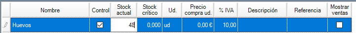 Si lo que quieres es modificar el stock actual de un producto concreto, sitúate en el campo correspondiente y házlo. Al cambiar de celda, se aplica la modificación.