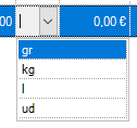 Ud.: unidad de medida del producto (unidad, kilo, litro, etcétera), en el ejemplo unidades (ud). A destacar, se autoguardan las unidades de medida utilizadas, para que las tengas disponibles más adelante para otros productos de compra.