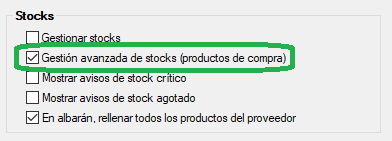 Por lo que, activa: Gestión avanzada de stocks (productos de compra), y sigue leyendo.