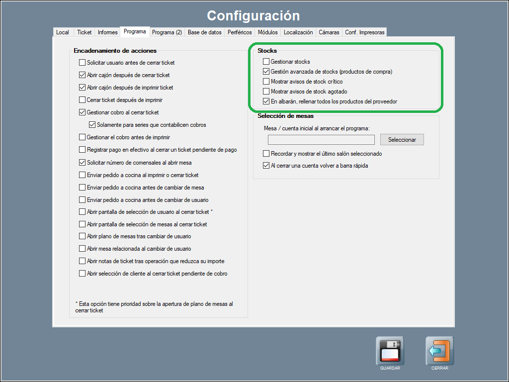 En primer lugar, te contamos las opciones de configuración para el control de existencias y gestión de stocks en Hosteltáctil®.