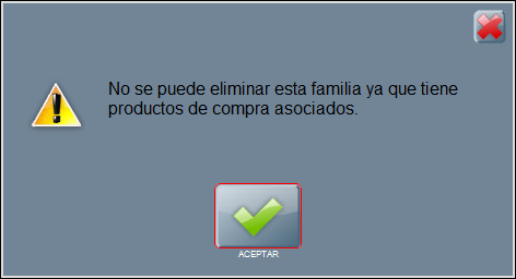 Si la familia tiene productos de compra asignados, ésta no podrá eliminarse.