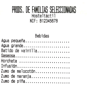El listado de productos de compra es una tabla con los siguientes campos: familia (con la familia a la que pertenece el producto); factor (una línea por cada unidad de paquete o caja, en el ejemplo, el agua pequeña tiene dos factores: 1 y 12); nombre (con el nombre del producto); stock (columna dónde tienes que anotar el recuento de existencias para cada producto).