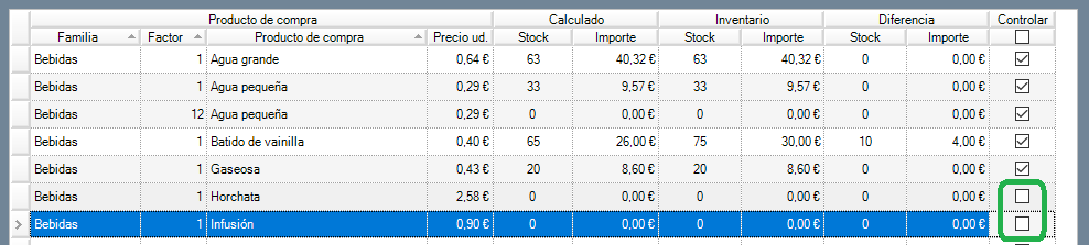 O desmarcar los productos que no te interese regularizar en este inventario, desde la columna controlar.