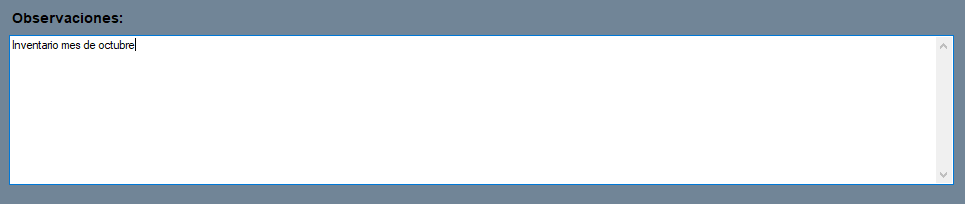 Escribe el número o identificador para el inventario, en nuestro ejemplo: ‘octubre’.