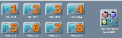 Para cambiar la tarifa a todo el salón, pulsa sobre PRECIO PARA TODO EL SALÓN, y luego pulsa sobre el botón correspondiente a la tarifa que quieres que se aplique en ese salón.