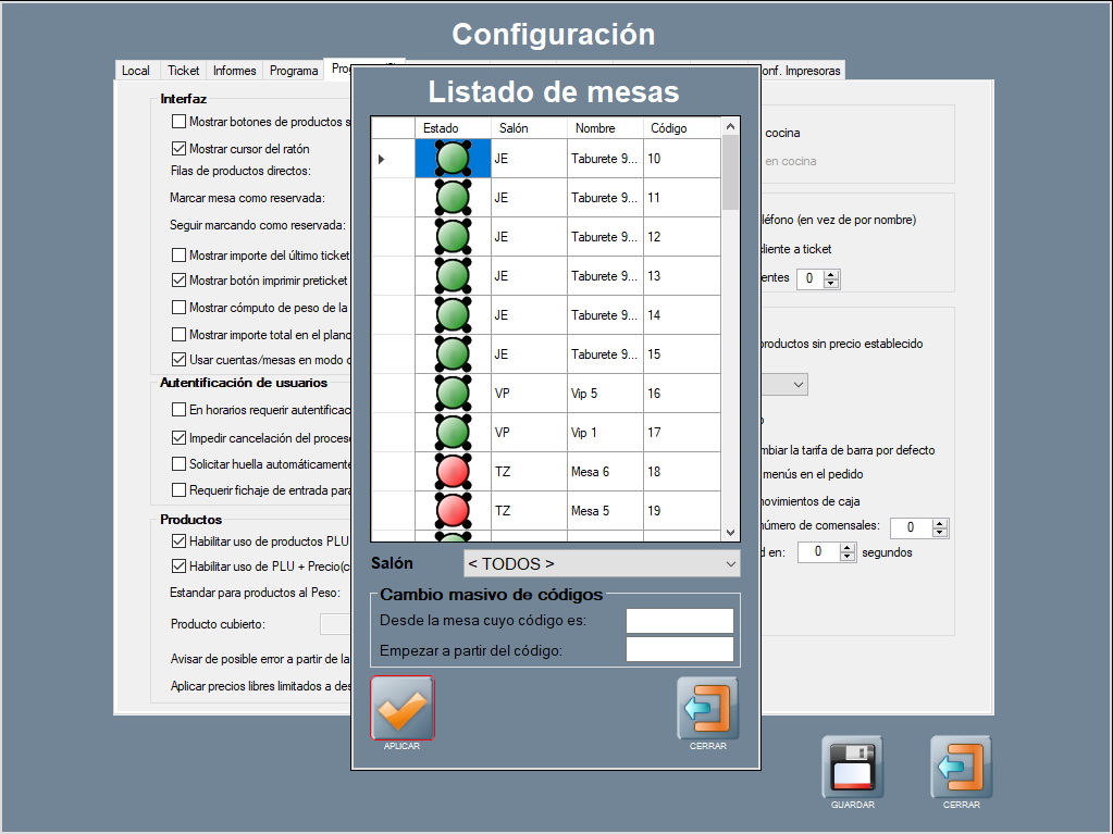Configuraciones que afectan a la gestión de salones y mesas