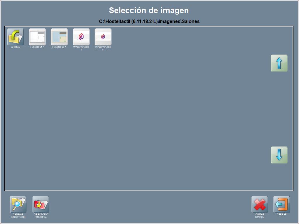 Se abre la ventana de selección de imagen, desde la que puedes cambiar el directorio o moverte al directorio principal de Hosteltáctil, para cargar la imagen.