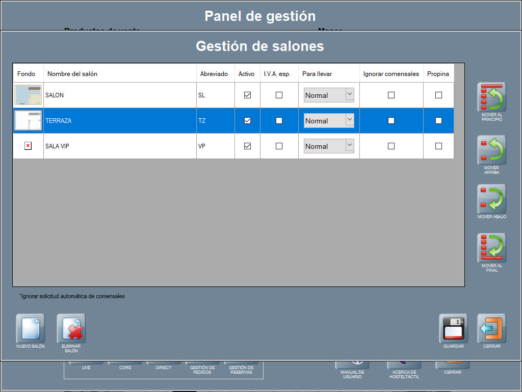 Página anterior: Gestión de salones y mesas | Siguiente página: Gestión de mesas