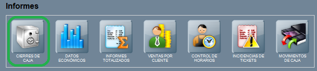 Para acceder al informe de cierres de caja usa el botón CIERRES DE CAJA situado en Panel de gestión / Informes.