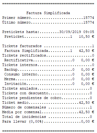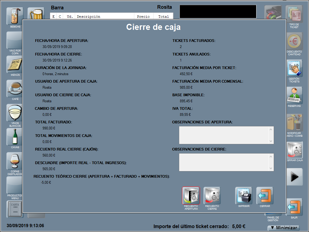 Por último, y para acabar con las opciones de impresión, imprime un cierre con IMPRIMIR CAJA.