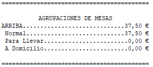 Mostrar ventas por agrupaciones de mesas: imprime totales por agrupaciones de mesa.
