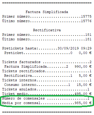 Contabilizar tickets sin comensales establecidos como si tuviesen un único comensal: los tickets con comensal igual a 0, se contabilizan a efectos de informes y valores medios, como si fuesen de un comensal.