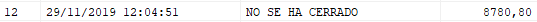 Para ver el detalle de un cierre en el panel de la derecha, simplemente selecciónalo y este se mostrará tal cuál sale por la impresora. Si corresponde a una caja pendiente de cierre, aparece con la leyenda NO SE HA CERRADO.