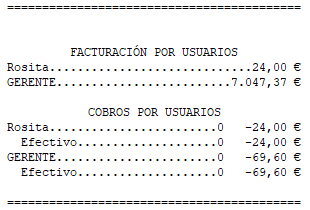 Imprimir ventas por usuario: imprime el resumen de ventas por usuario.