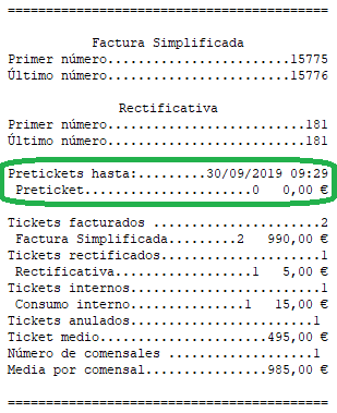 Mostrar importe y número de tickets abiertos: imprime el número de pretickets y su valor en euros.