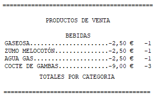 Imprimir resumen agrupado por categorías: imprime el total vendido por categorías.