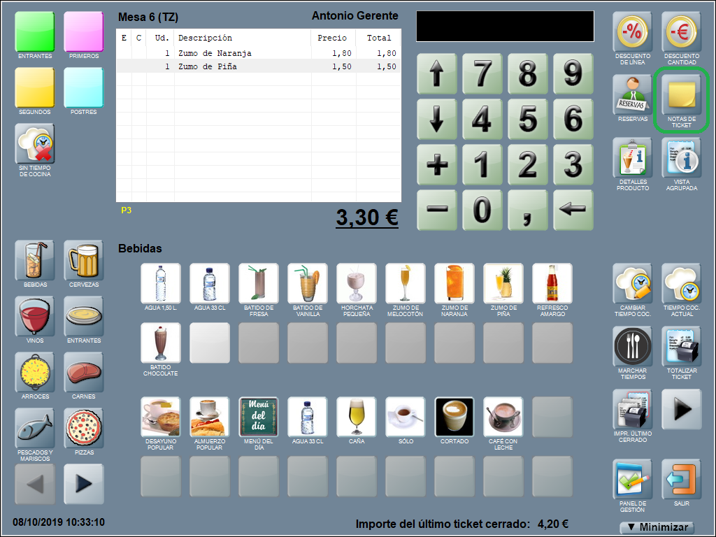 Para acceder a estas anotaciones pulsa NOTAS DE TICKET.