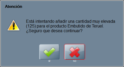 Si la diferencia de unidades es mucha y hay un salto considerable, será muy costoso llegar a base de pulsaciones sobre una tecla, con lo que te recomendamos utilizar MODIFICAR CANTIDAD, que abre una ventana donde escribir la nueva cantidad (en unidades o en gramos si es un producto al peso) y ACEPTAR.