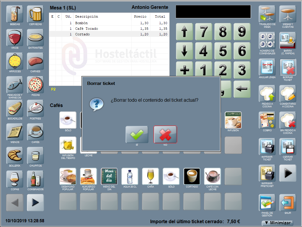 Aquellas líneas de productos que ya se hayan añadido a la cuenta son la excepción, y deberán ser borradas desde la pantalla principal. Pero no tienes que preocuparte por ello, la aplicación Hosteltáctil® avisa.