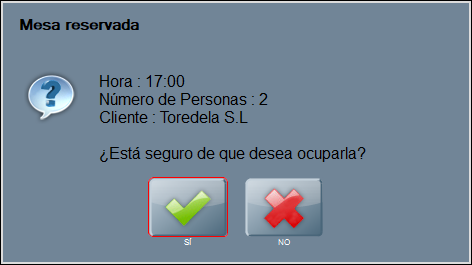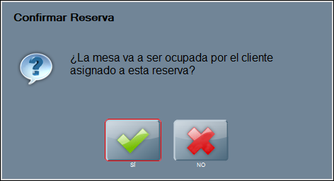 Al aceptar este mensaje, el programa preguntará si la mesa va a ser ocupada por el cliente que la tenía reservada.