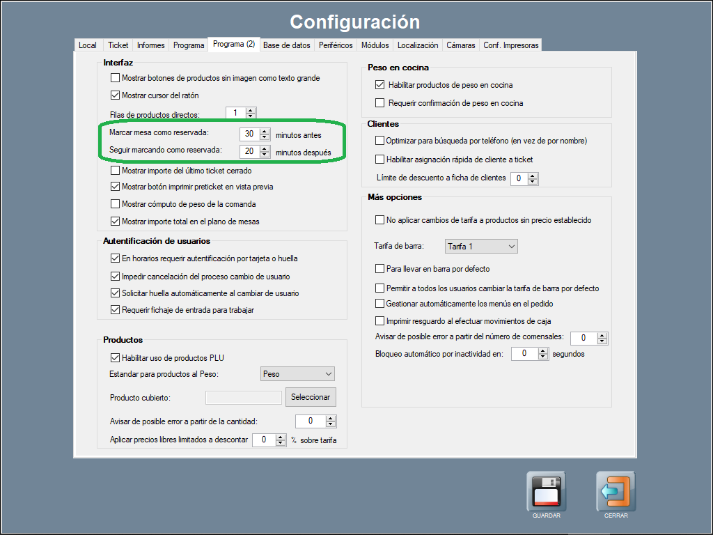 Lo cierto es que puedes configurar cuánto tiempo, antes y después de la hora de la reserva, permanece la mesa en amarillo (reservada en el sistema).