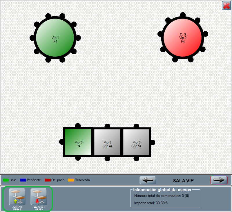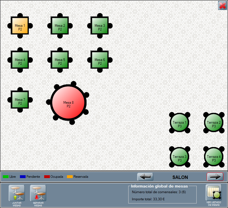 Como hemos mencionado antes, una mesa reservada se muestra en color amarillo, en el plano de mesas.