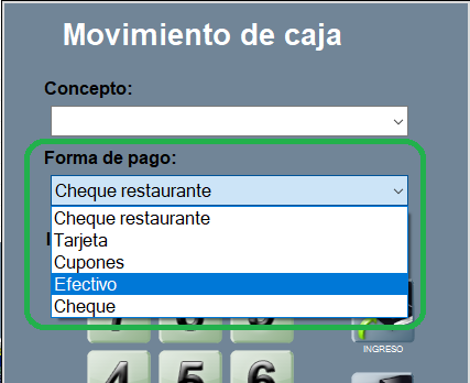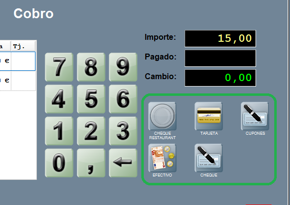 En la ventana de Cobro, abajo a la izquierda aparecen las formas de pago activas.