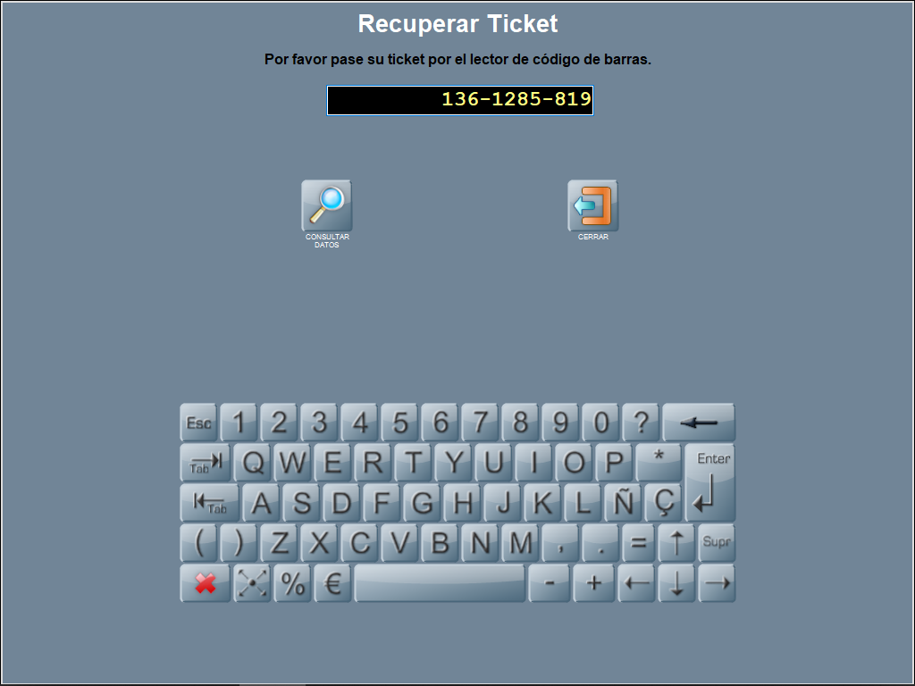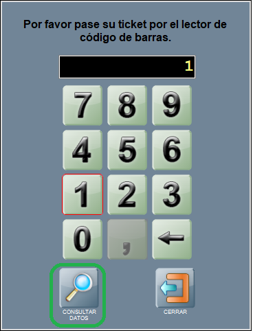 Para seleccionar un ticket por código, crea el botón personalizado, imprime el ticket con dicho código de ticket, y pulsa sobre el botón personalizado: se abrirá una ventana pidiendo que pases el ticket por el lector de códigos.