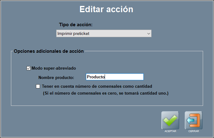 Esta acción establece de forma automática el número de comensales de la mesa.