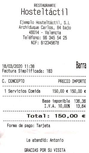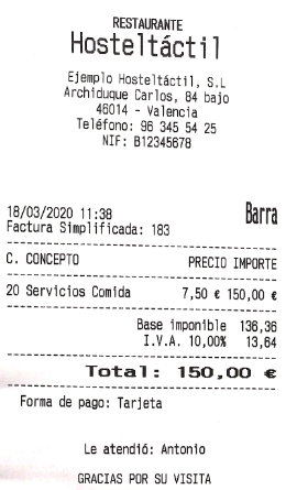 Con los datos de cliente rellenados, pulsa sobre ACEPTAR E IMPRIMIR, lo que asociará el cliente al ticket, e imprimirá una copia del mismo, pero con el encabezado con los datos de cliente.
